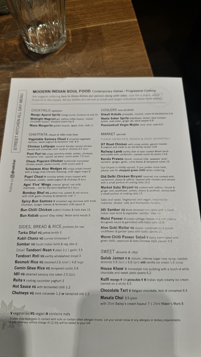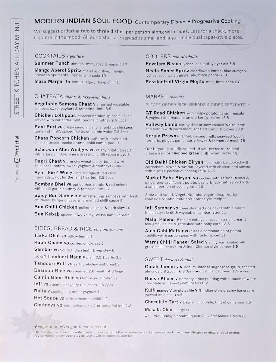 At Roti Chai, located in the heart of London, the menu brings together vibrant, traditional Indian flavors with a modern twist. Whether you're stopping by for a quick bite or settling in for a leisurely meal, the Roti Chai Menu has something to excite every palate. From the crispy, spiced snacks to the rich, fragrant curries, every dish is designed to transport you to the streets of India. With a diverse range of options, including vegetarian and non-vegetarian delights, there's no shortage of choice. Whether you’re craving something light or hearty, the menu offers everything from comforting street food to indulgent mains that showcase the depth of Indian cuisine. Each dish is carefully crafted using fresh ingredients, making sure every bite is packed with flavor. Whether you're a fan of bold spices or delicate, nuanced tastes, Roti Chai guarantees a satisfying and memorable dining experience.